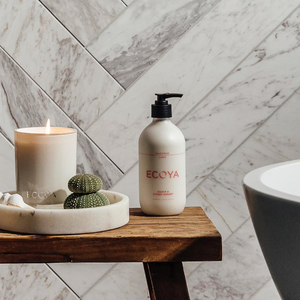 Available 5 iconic ECOYA fragrances, Lotus Flower, French Pear, Guava & Lychee, Sweet Pea & Jasmine & Sandalwood & Amber.