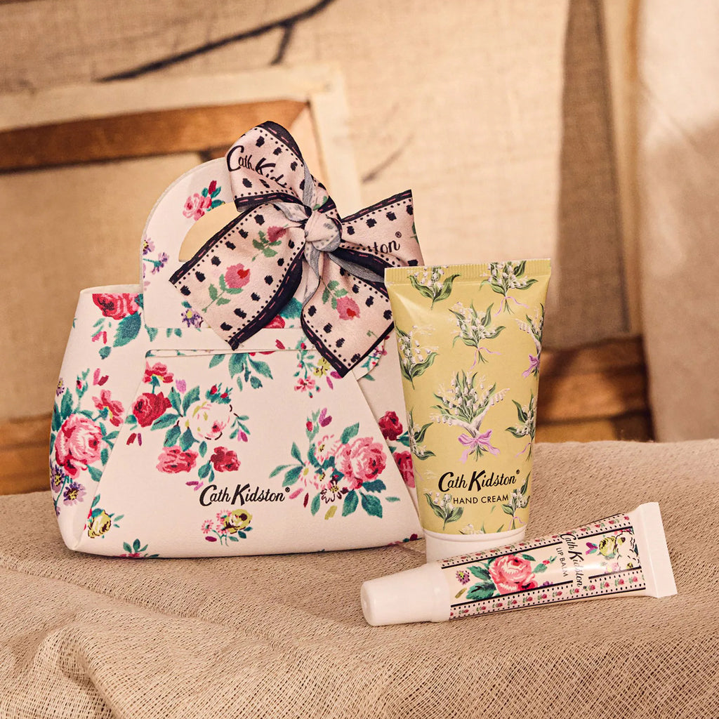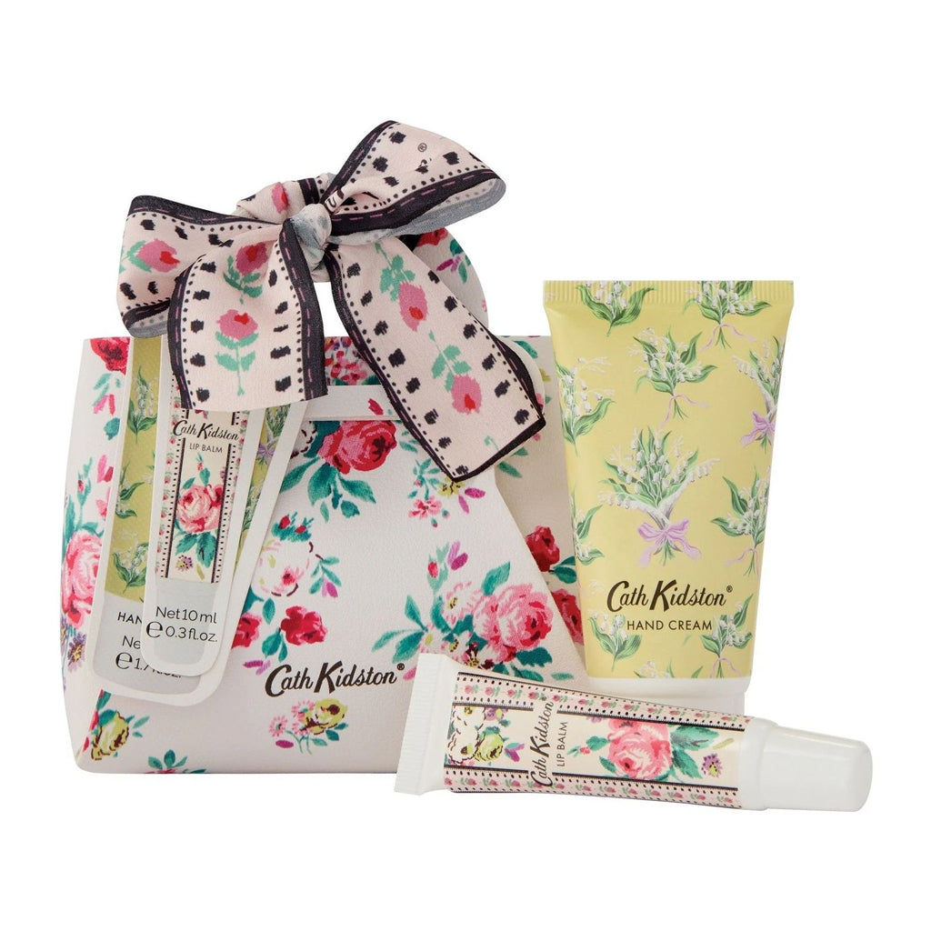 An enchanting Cath Kidston hand and lip gift sure to delight. Yuzu and Sage shea butter hand cream and coconut lip balm in a hand bag finished with a hand tied Cath Kidston blow.
