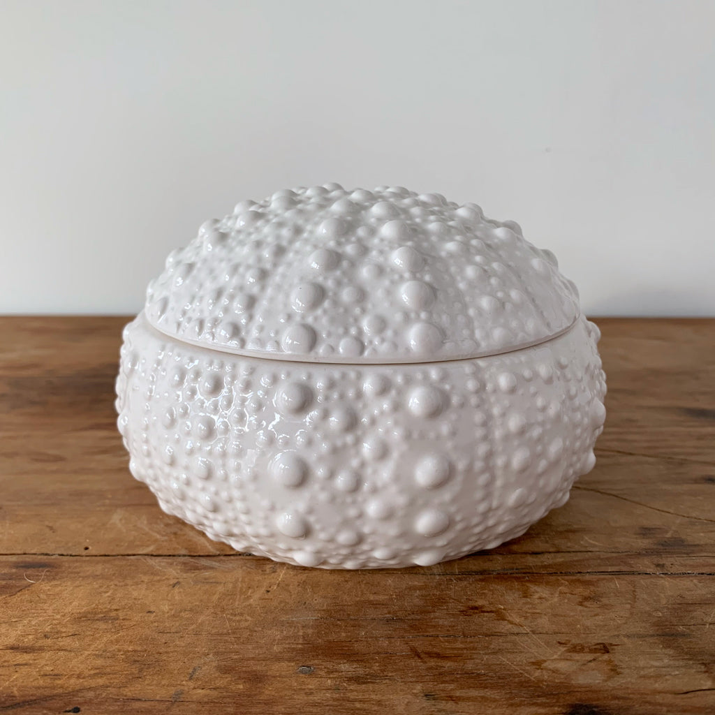 Ceramic kina-shaped bowl with lid. Perfect for jewellery, trinkets, odds & ends, or even lollies.