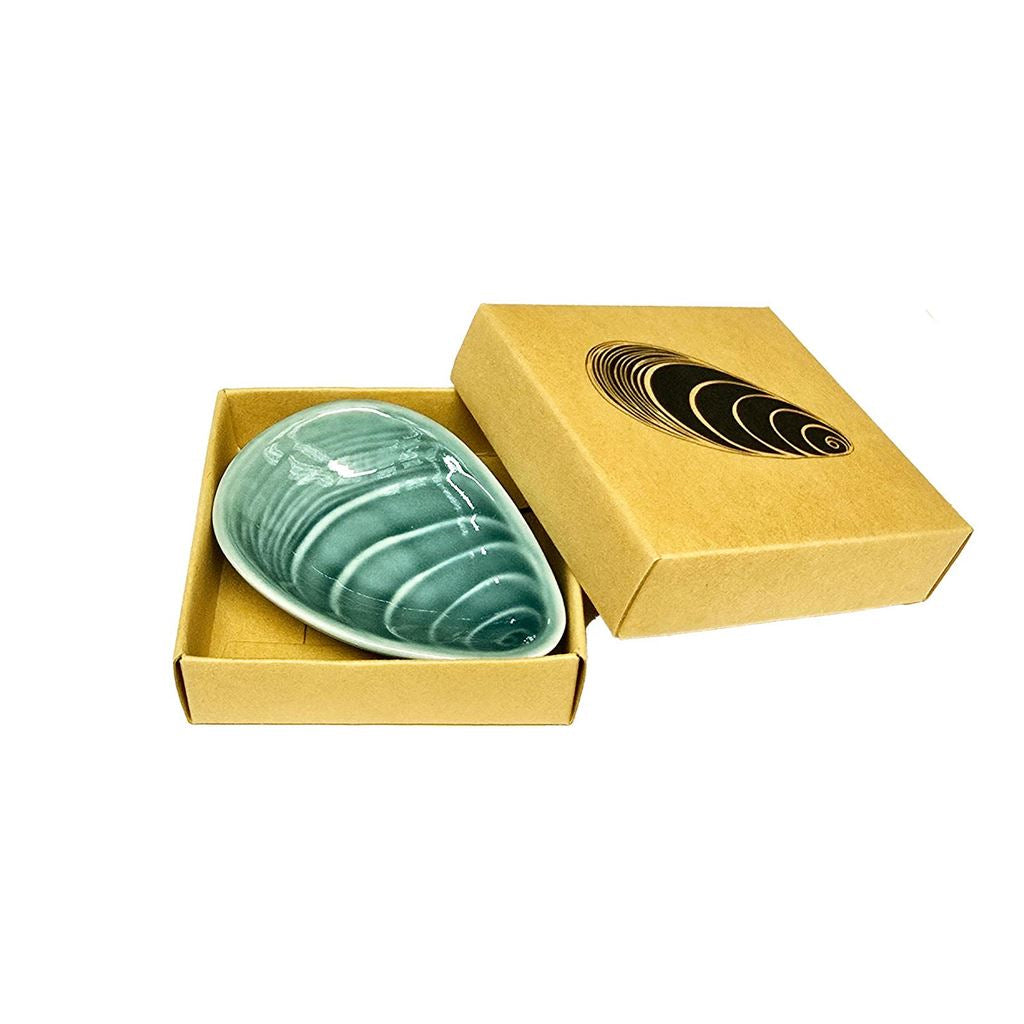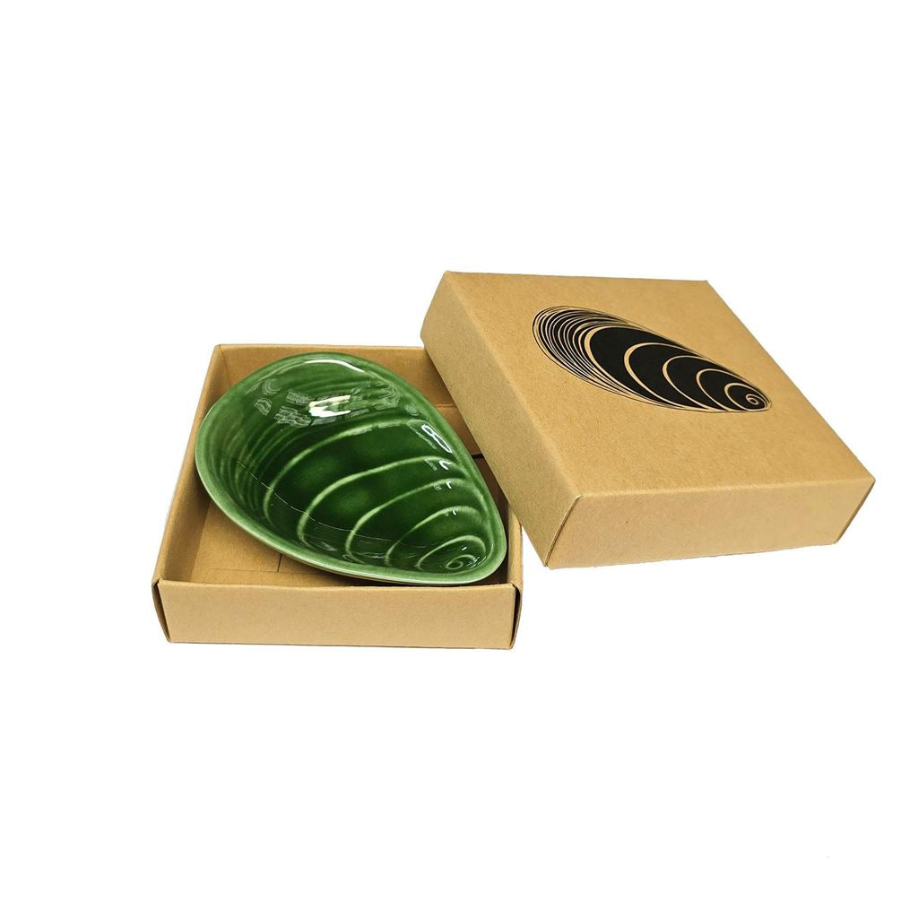 The Mussel series by Jo Luping features a textural relief design with a gloss clear glaze inside and outside.