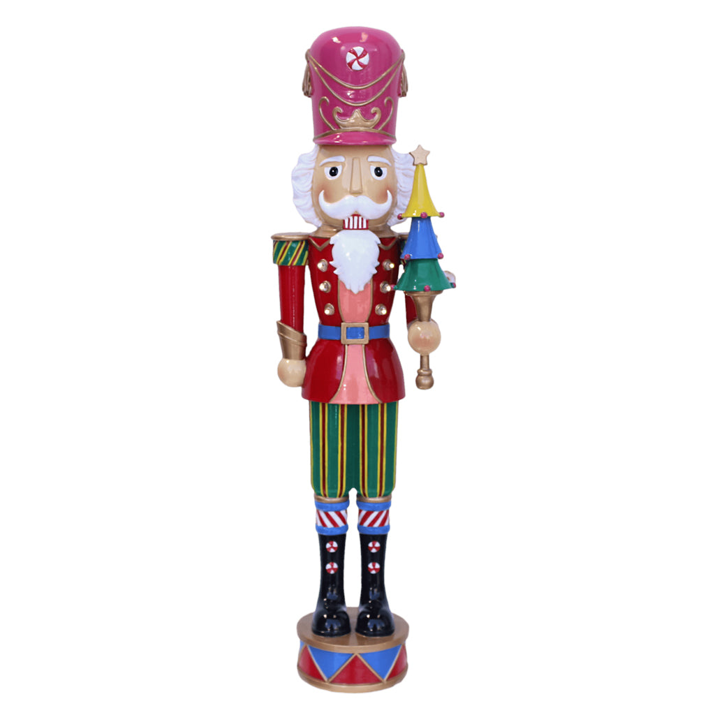 Charming and colourful free-standing Nutcracker in dapper dress uniform with baton at the ready.